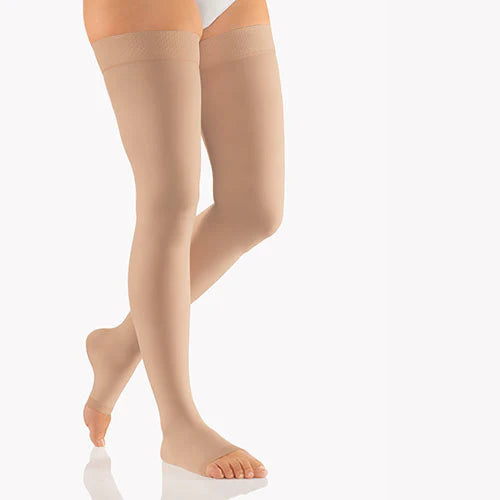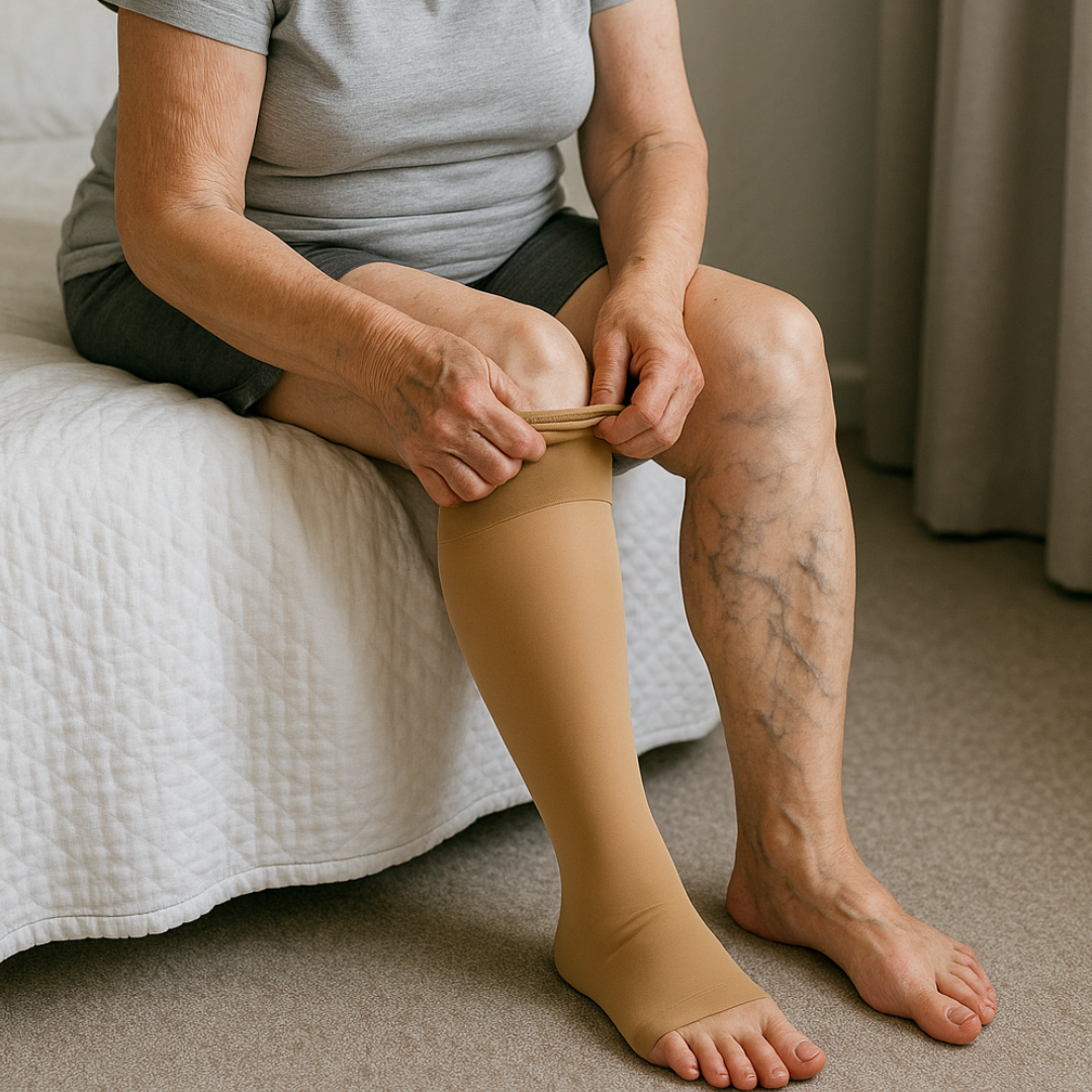 Son prendas elásticas que ejercen presión graduada en las piernas, ayudando a mejorar la circulación sanguínea, prevenir la hinchazón y reducir la sensación de pesadez.
